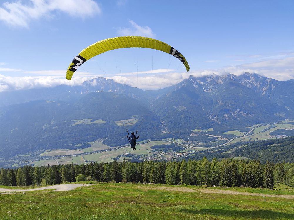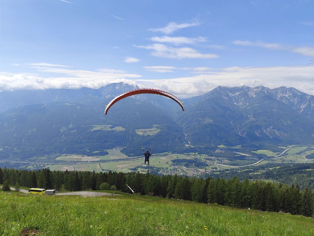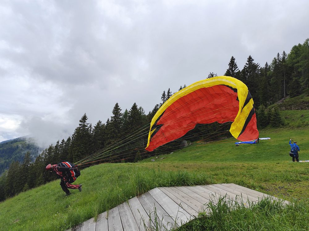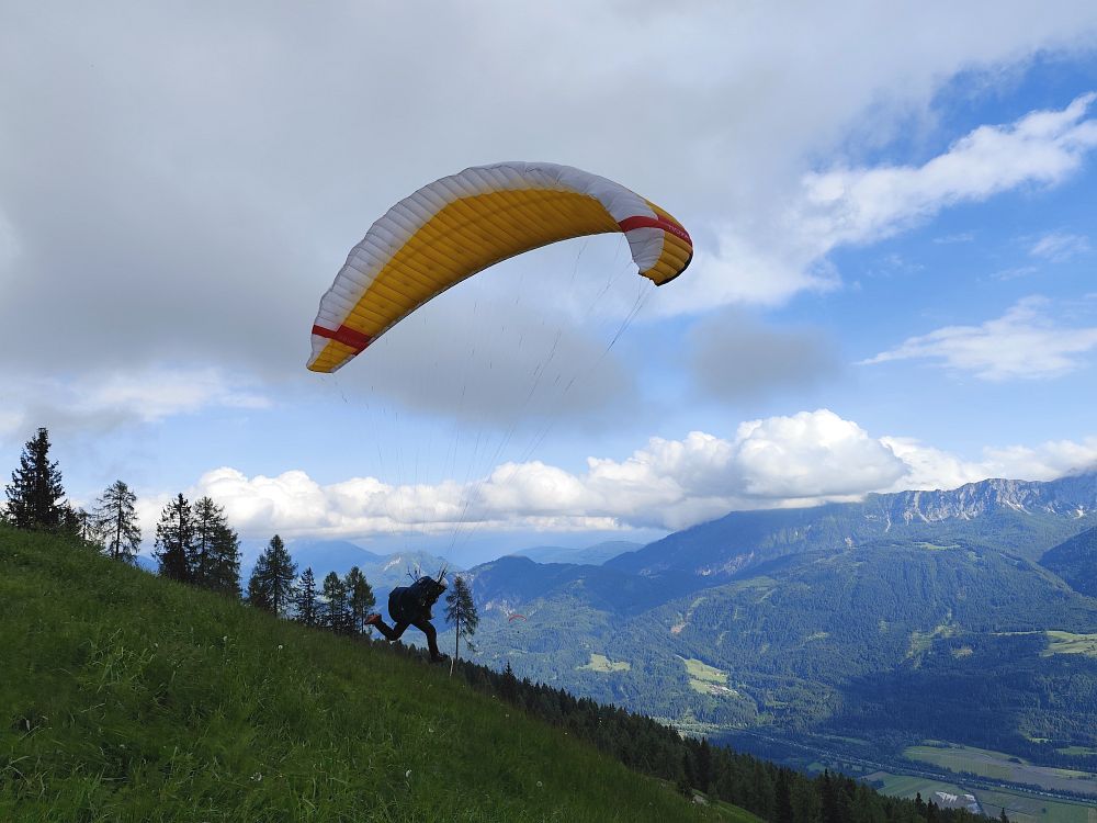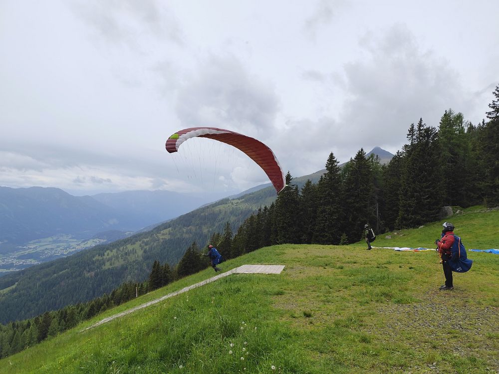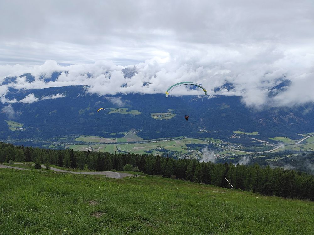 Als es gegen Mittag abtrocknete, flogen wir zuerst vom Wiesfleckerl und anschließend sogar noch von der Emberger Alm.
