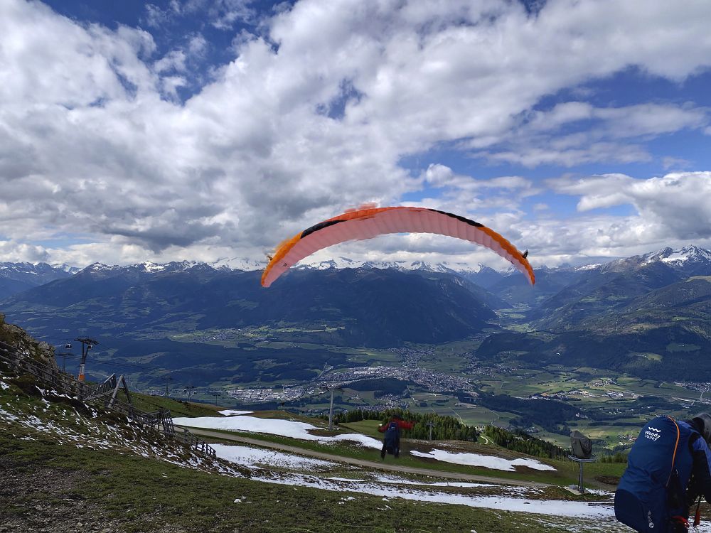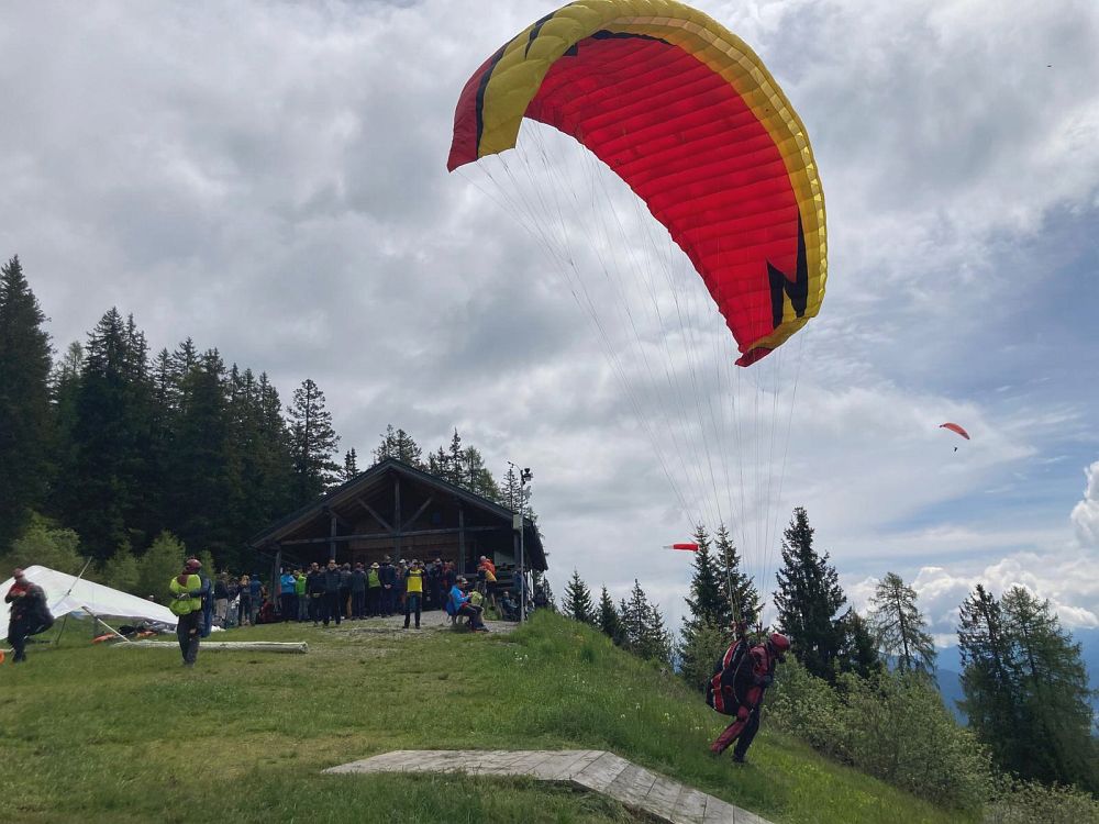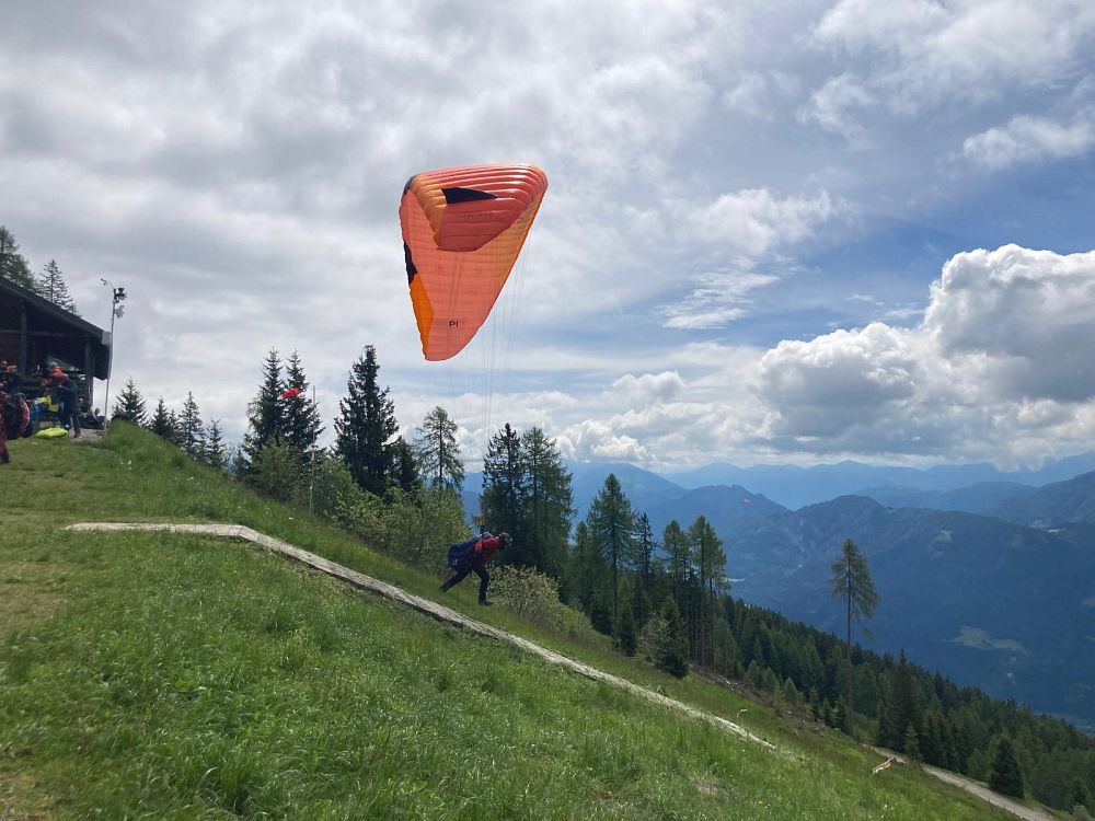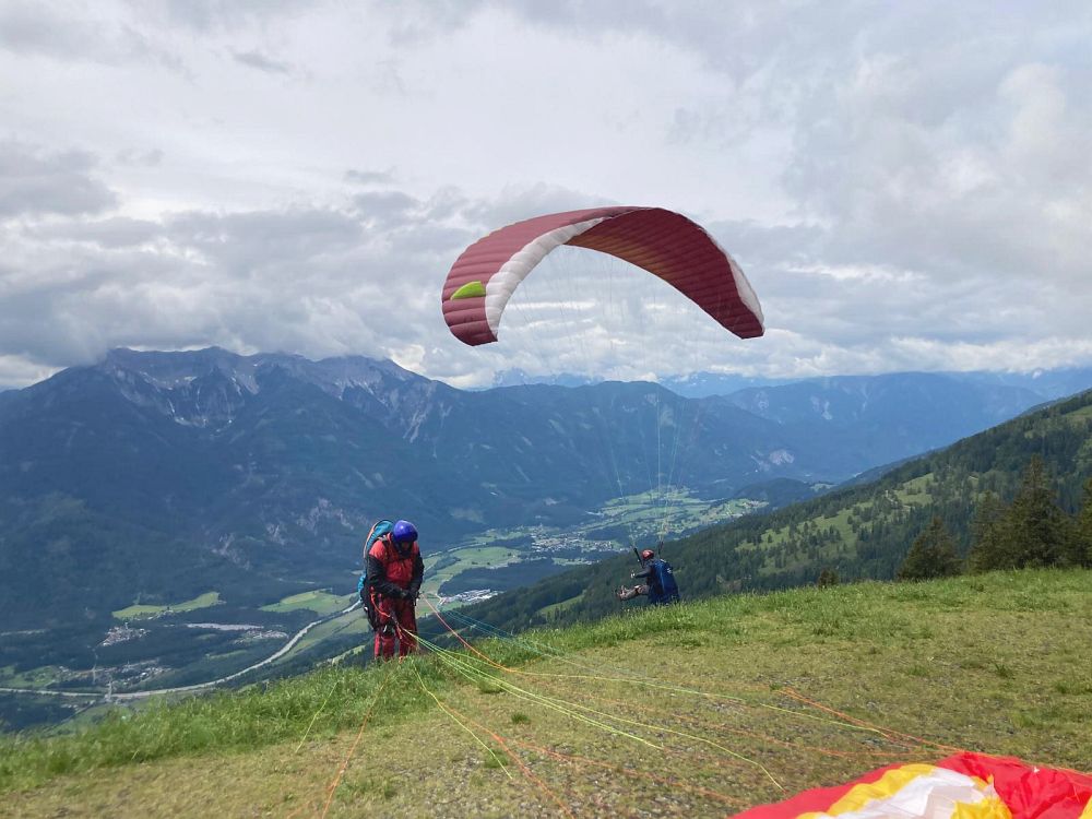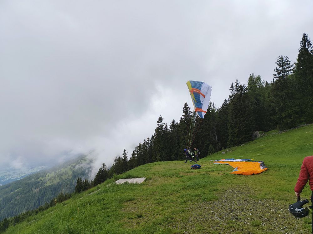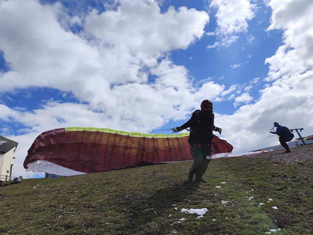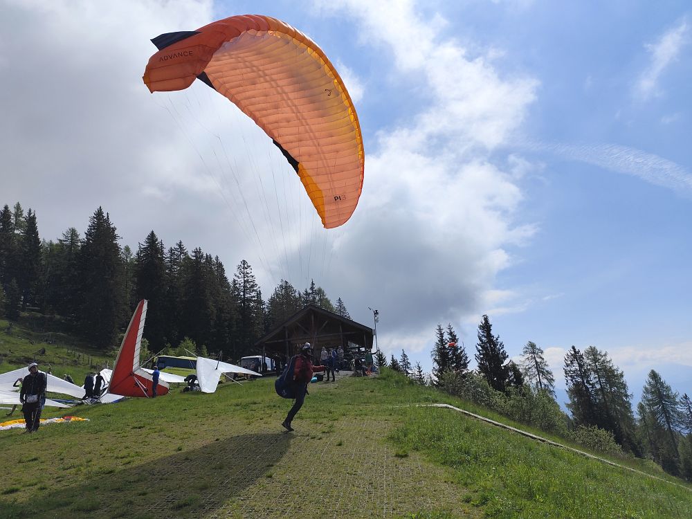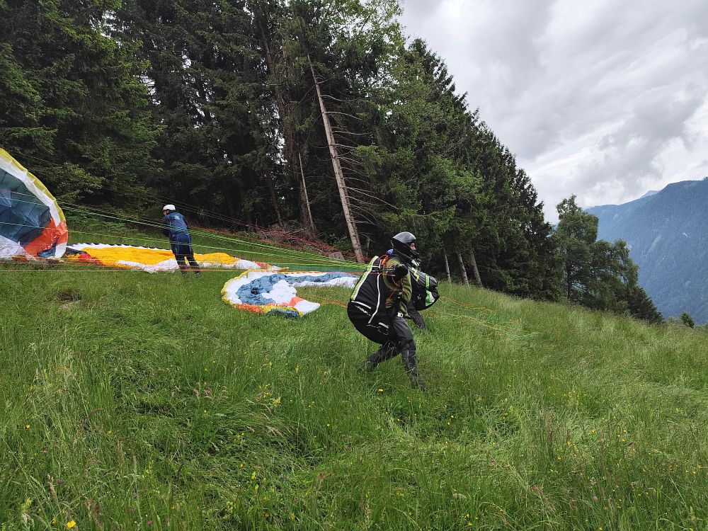 Schon am Anreisetag sind wir vom Wiesfleckerl gestartet, wobei die meisten keinen Abgleiter machen wollten und am Ende der Talwind sehr stark zunahm.