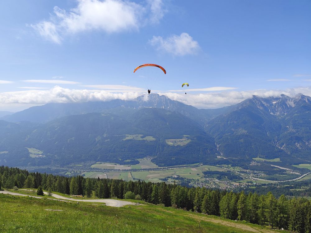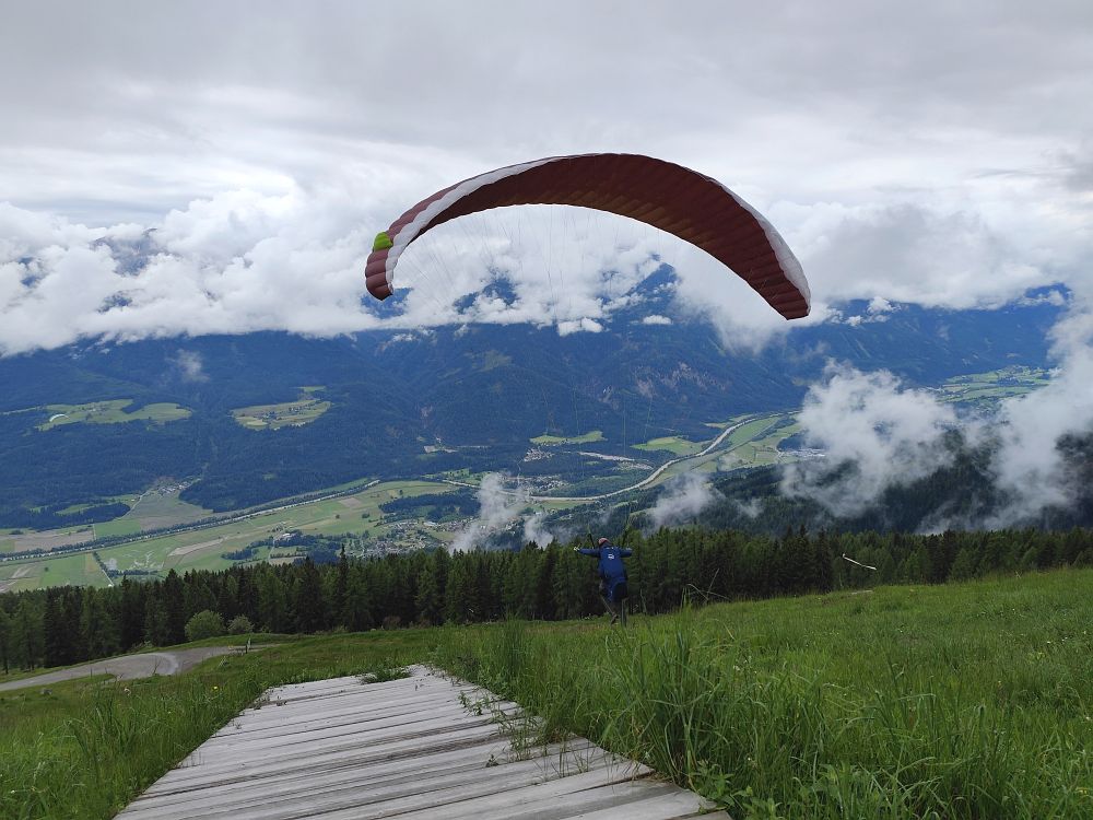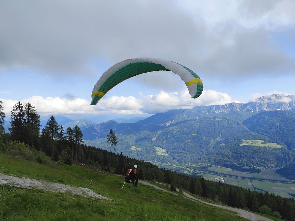 Als es gegen Mittag abtrocknete, flogen wir zuerst vom Wiesfleckerl und anschließend sogar noch von der Emberger Alm.
