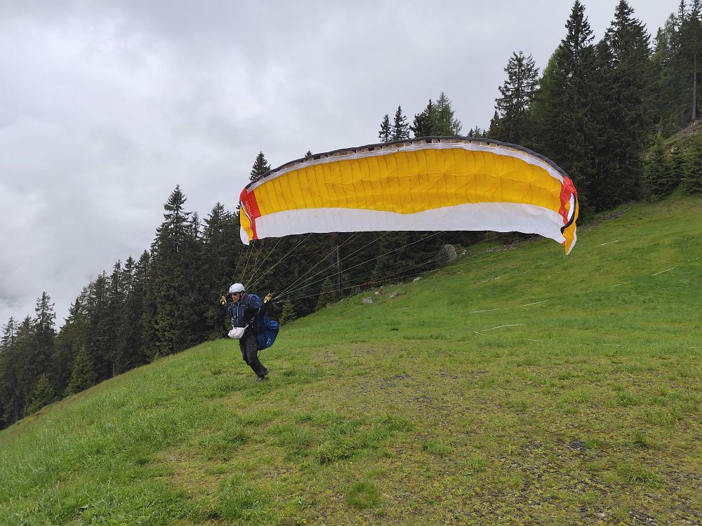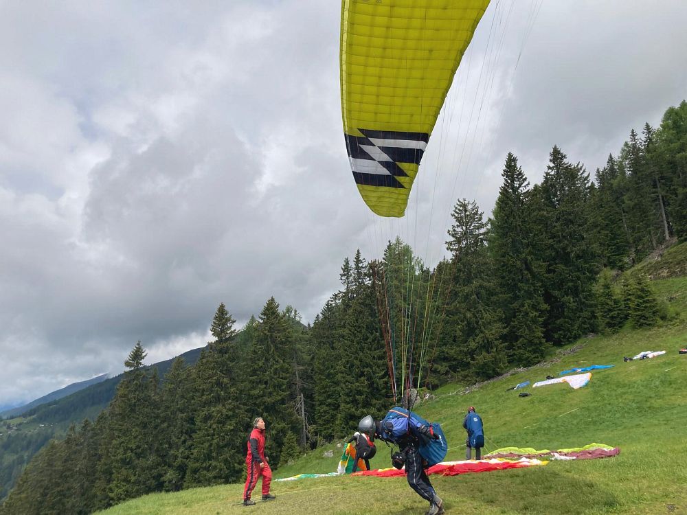Schon am Anreisetag sind wir vom Wiesfleckerl gestartet, wobei die meisten keinen Abgleiter machen wollten und am Ende der Talwind sehr stark zunahm.
