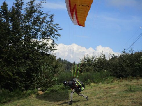 Bei einem Flug war der Wind etwas stärker als erwartet. Manch einer suchte schon nach einer Ausweichwiese. Aber was von oben oft wie Wiese aussieht, ist oft keine. Es sind aber alle sicher dann in unserer Privat-Landewiese runter gekommen. Es gab sogar ein paar, die in den Pool hüpften. Brrr!