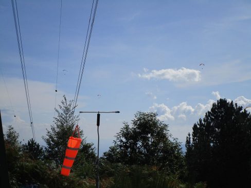 Diecimo war aus dem Wetterbericht und den vorgesagten Windverhältnissen für den Sonntag als Fluggebiet zu bevorzogen. Der Wind war allerdings am Anfang noch deutlich aus der falschen Richtung und zur Überbrückung der Wartezeit gab es noch einen Cappuccino. Birgits Gefühl für den Zeitpunkt zum Hochfahren passte genau. Das rettete uns einen schönen Flug.