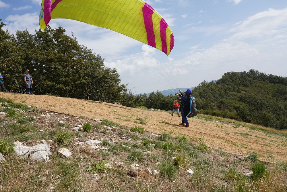 Seit dem letzten Jahr hatte sich der Startplatz erheblich verändert. Viele Steine und Unebenheiten wurden entfernt und mit einem Netz überspannt. Ein Kompliment für diese mühselige Arbeit der einheimischen Flieger.