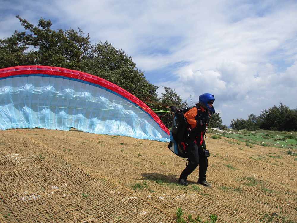 Seit dem letzten Jahr hatte sich der Startplatz erheblich verändert. Viele Steine und Unebenheiten wurden entfernt und mit einem Netz überspannt. Ein Kompliment für diese mühselige Arbeit der einheimischen Flieger.