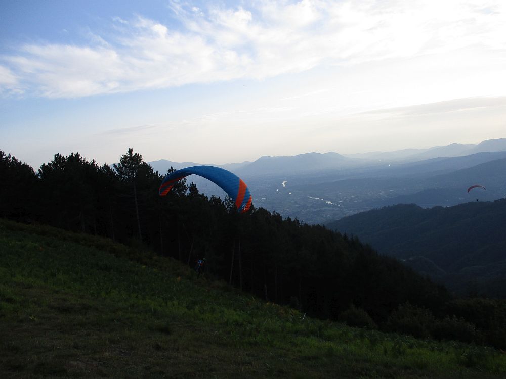 Nach Bezug der Räumlichkeiten unserer Hazienda ging es gleich rauf an den Pizzorne. Es war schon relativ spät und der Wind ließ schnell nach (von 5 km/h auf Null). Wer den letzten Teil der Auffahrt kennen gelernt hatte, wollte auf jeden Fall lieber runter fliegen. Abends gab es selbst gemachte Nudelgerichte in unserem Rittersaal. Allerdings sehr spät, da wir noch eine kleine botanische Exkursion zu erledigen hatten.