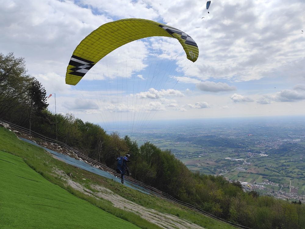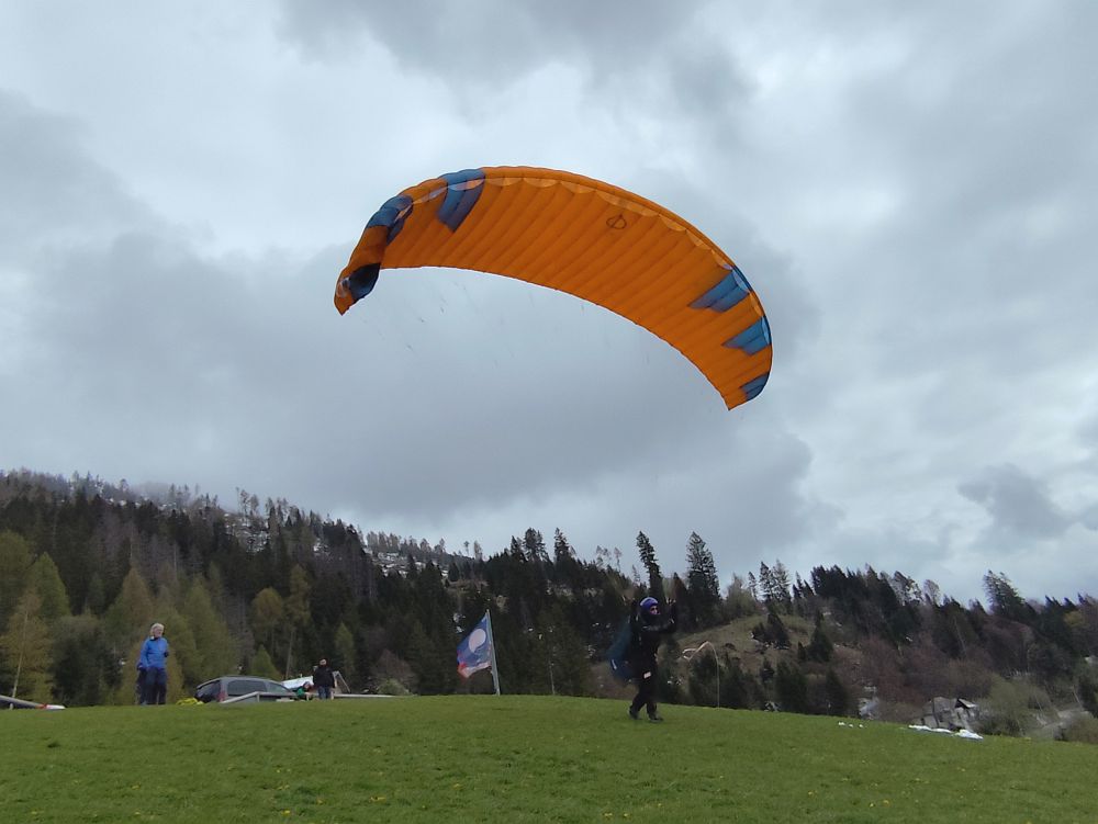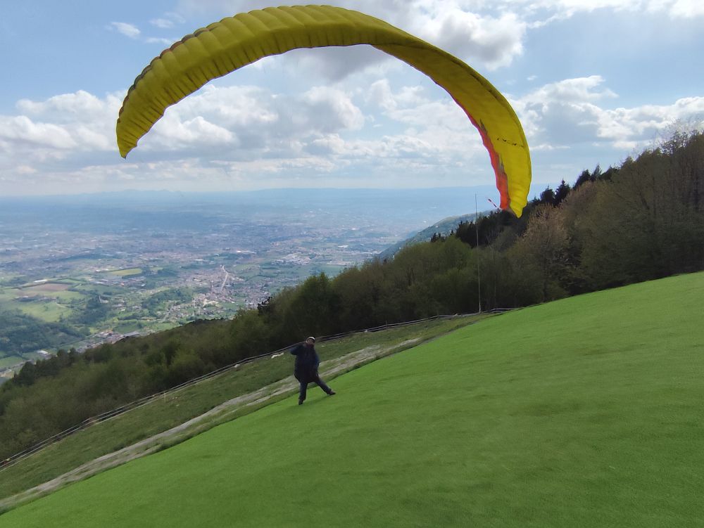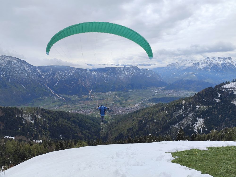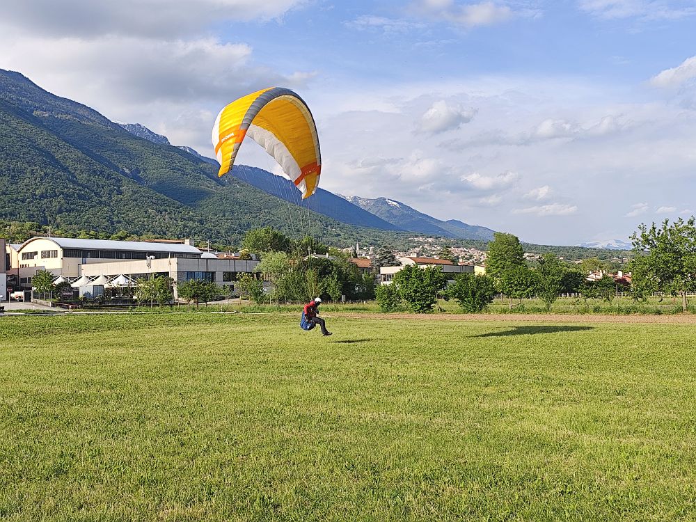 Nachdem der Talwind so stark wurde, dass es schwierig wurde den Landeplatz zu erreichen, fuhren wir zurück nach Bassano und konnten dort noch einen verlängerten Abgleiter machen.