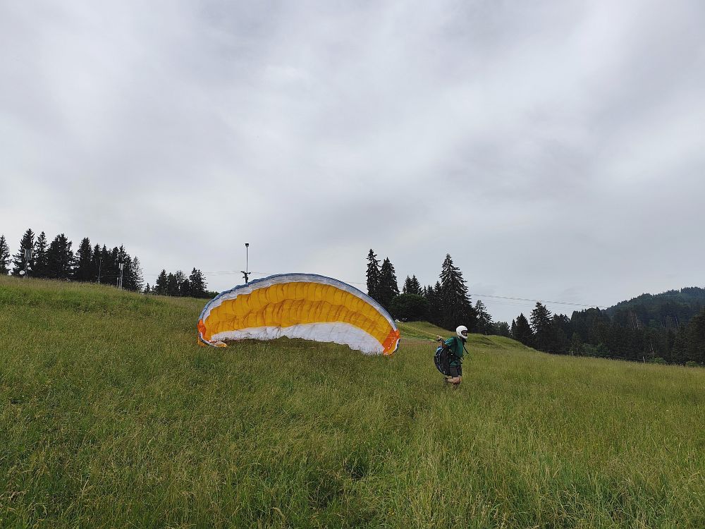 Die Teilnehmer brauchten neue Impulse, also haben sie noch am Ende der Grundausbildung den Rückwärtsstart - oder wie der DHV es nun will: rückwärtiges Aufziehen, Umdrehen und vorwärts Starten - geübt, bzw. gleich gemacht.