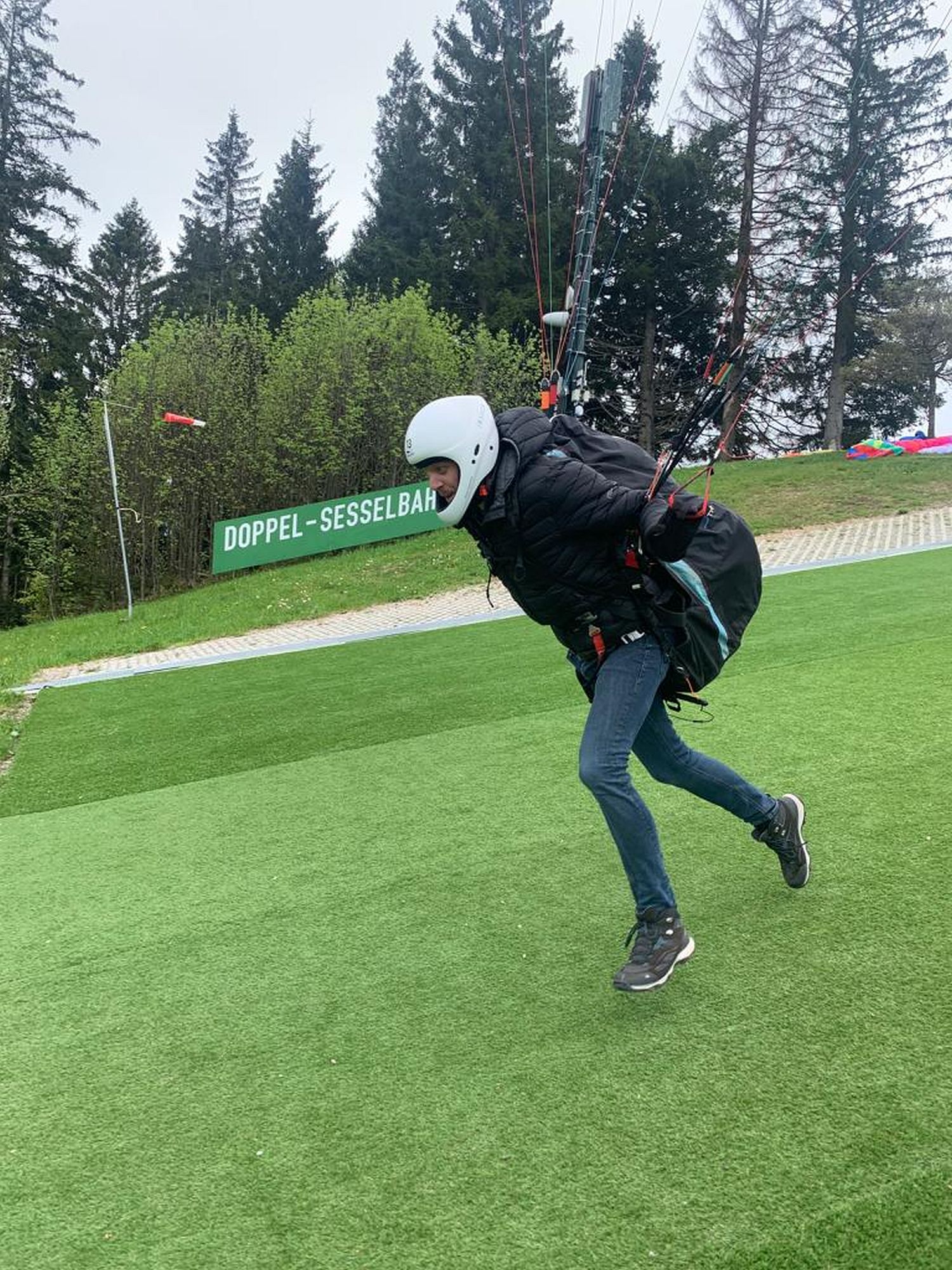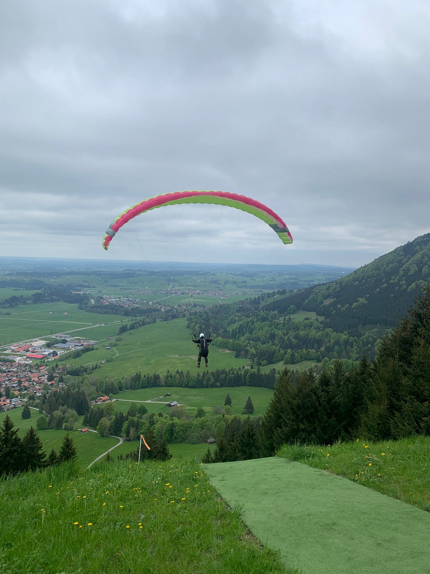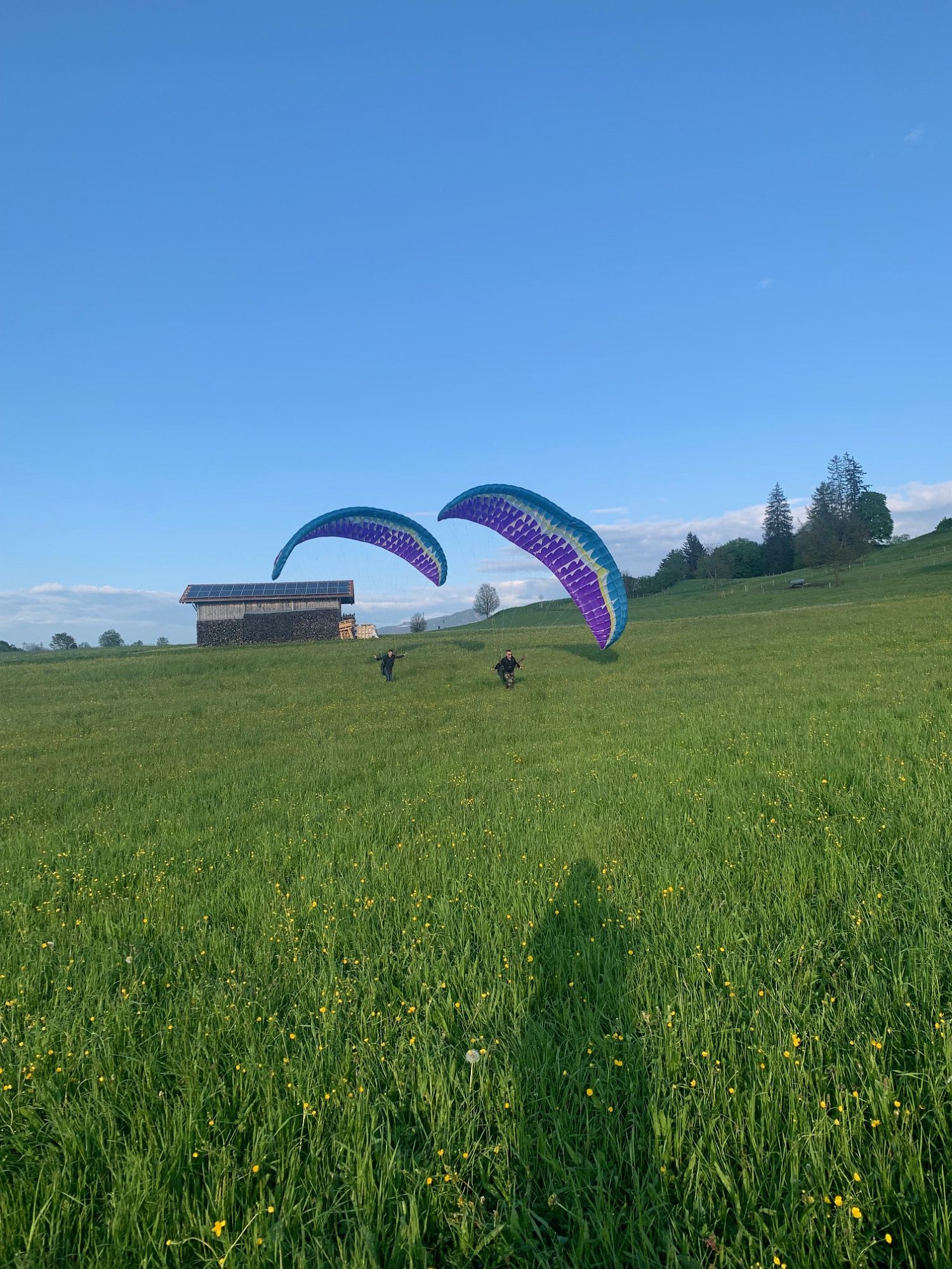 Bisher hatten wir die 2 Tage mit dem Grasshopper verbracht. Ich wollte den Leuten einen anderen Schirm geben. Einen Doppelsegler. Wir hatten null Wind draußen und die Umstellung auf einen neuen Schirm funktionierte ohne Probleme.