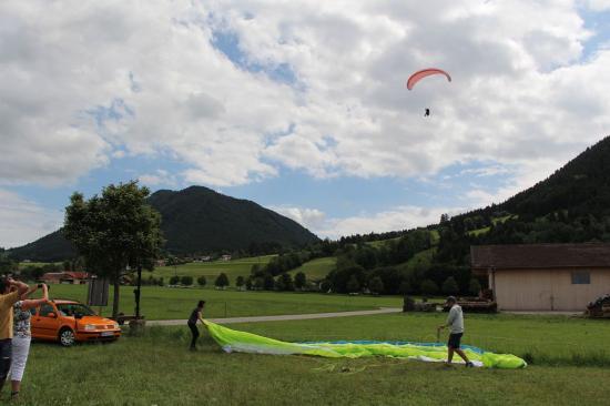 Freitag war das große Fragezeichen wegen des Windes. Aber das Glück blieb uns hold, und so schafften wir immerhin noch 2 Durchgänge am Buchenberg bevor das Wetter nicht mehr für uns geeignet war. Dank Ralf, der Euch am Landeplatz betreute, gab es dann doch noch ein paar Bilder.