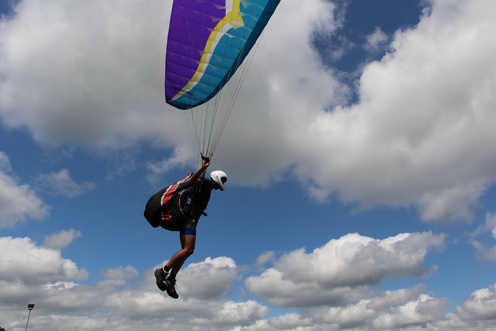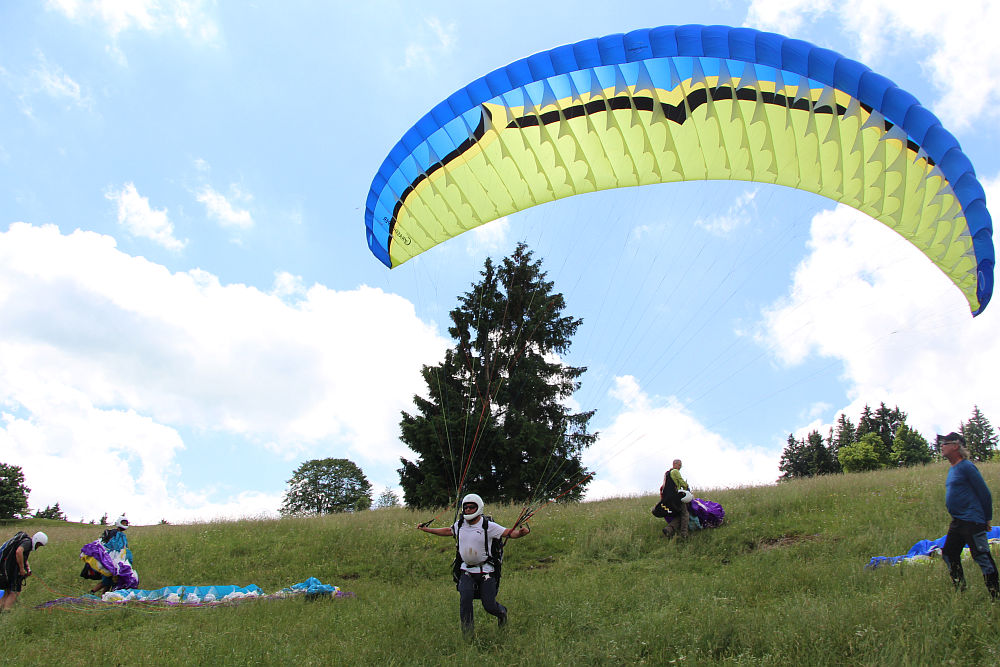Genug gehoppert. Der Single Skin Schirm "Grasshopper" wurde gegen die Doppelsegelschirme Fantasia, Prion und Alpha getauscht. Alle waren begeistert von der Leistungssteigerung und dem Handling, und das Training mit dem GH machte sich sehr positiv bemerkbar.