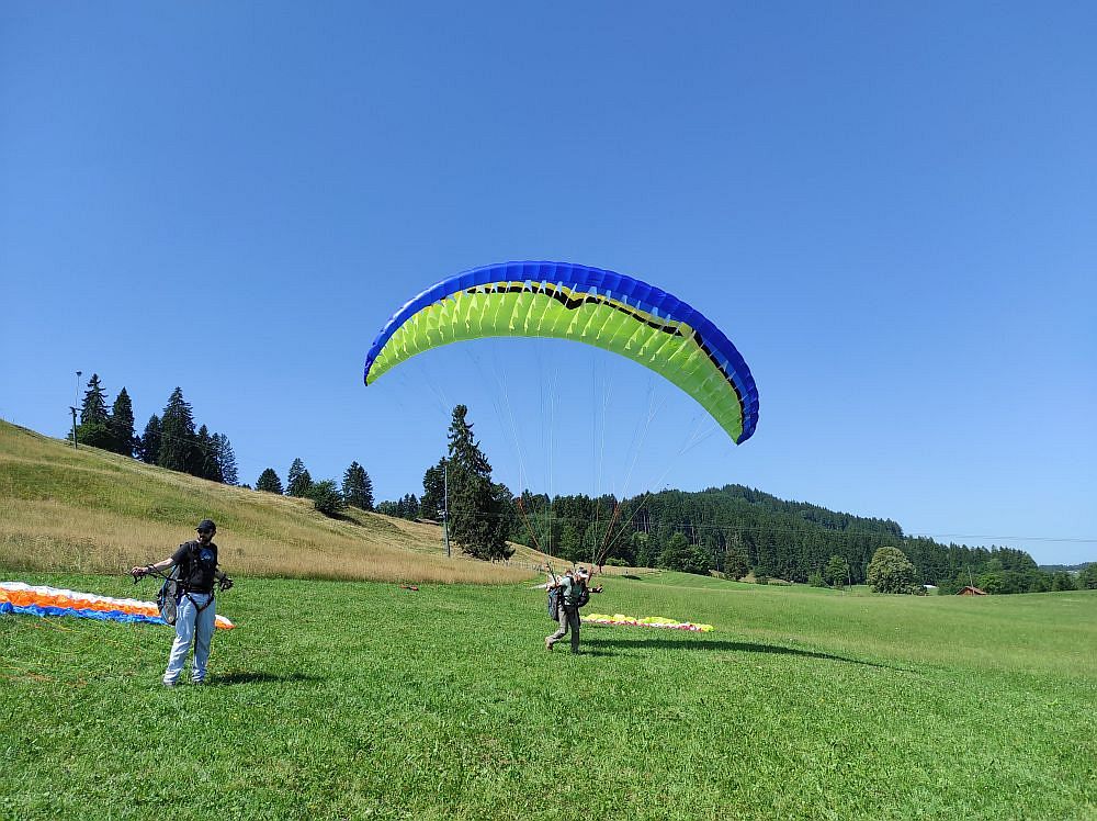 Freitag wollten wir die noch fehlenden Flüge der Grundausbildung absolvieren und andere Schirme ausprobieren.