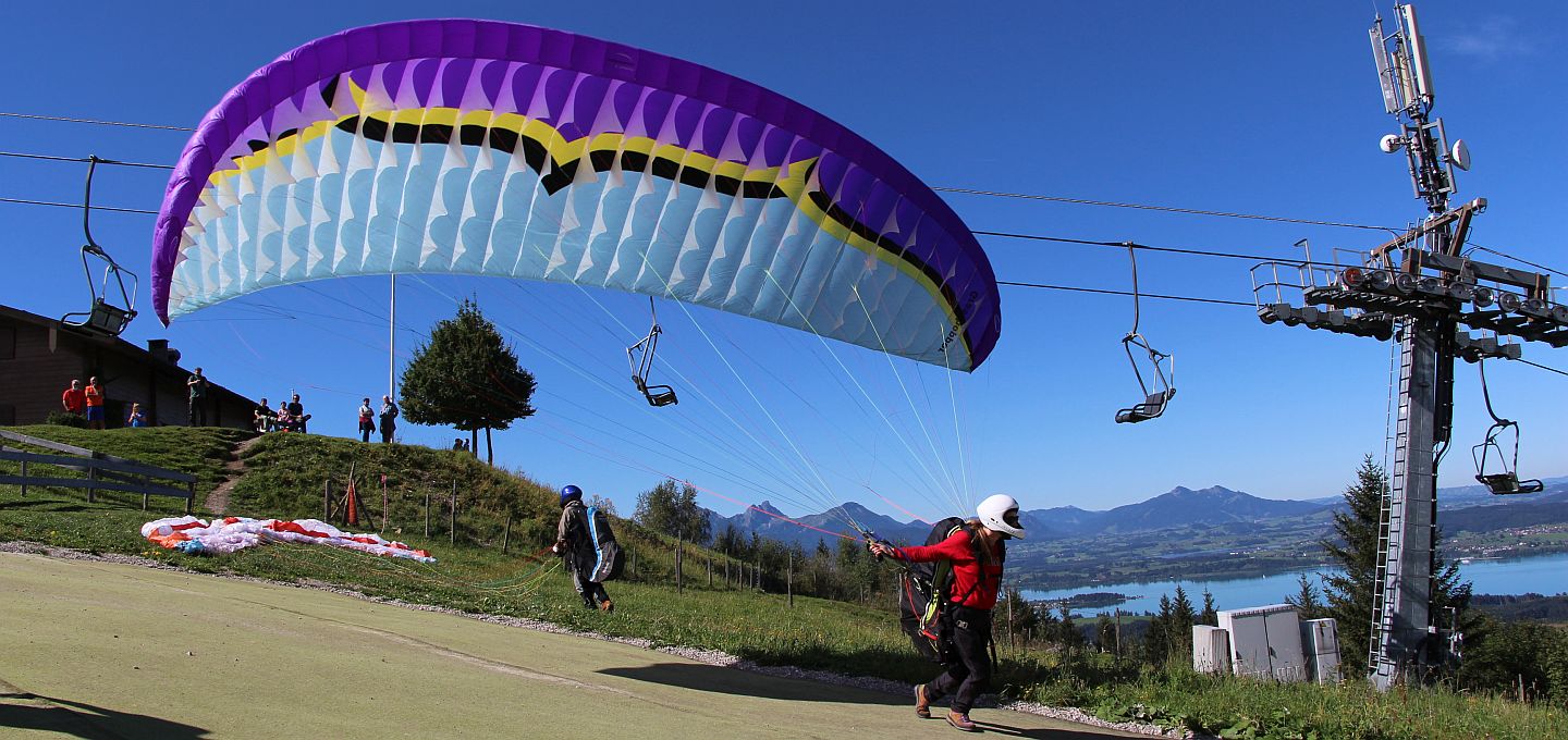 Wir hatten es tatsächlich noch geschafft. Es ging zum Buchenberg! Natürlich ein großes Erlebnis für alle. Zum ersten Mal richtig viel Höhe unter den Flügeln. Die Starts waren (erwartungsgemäß) sehr gut und unerwartet leichter als am Übungshang?... Die lange, sanft geneigte Startfläche am Buchenberg lässt wirklich keine Wünsche offen