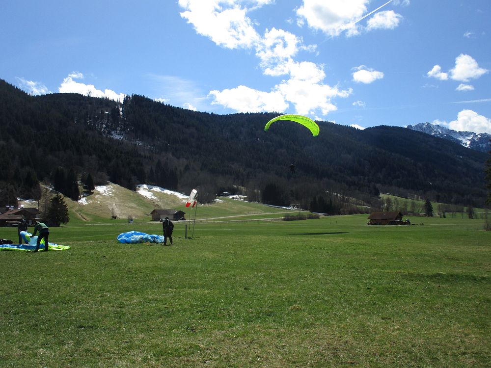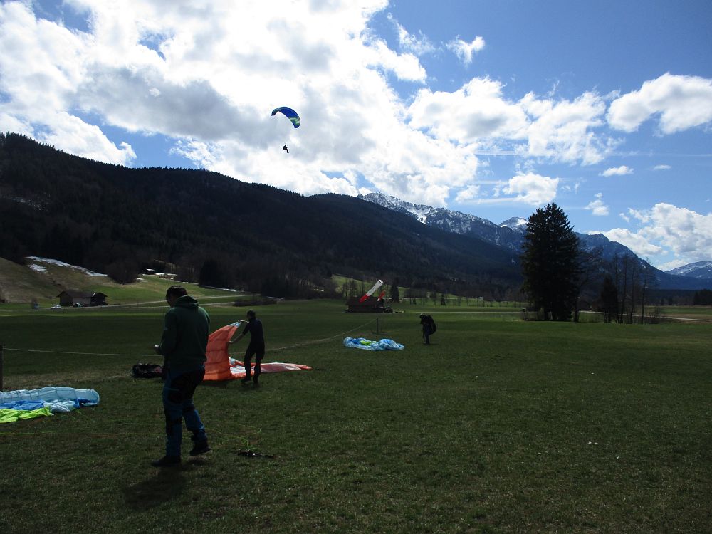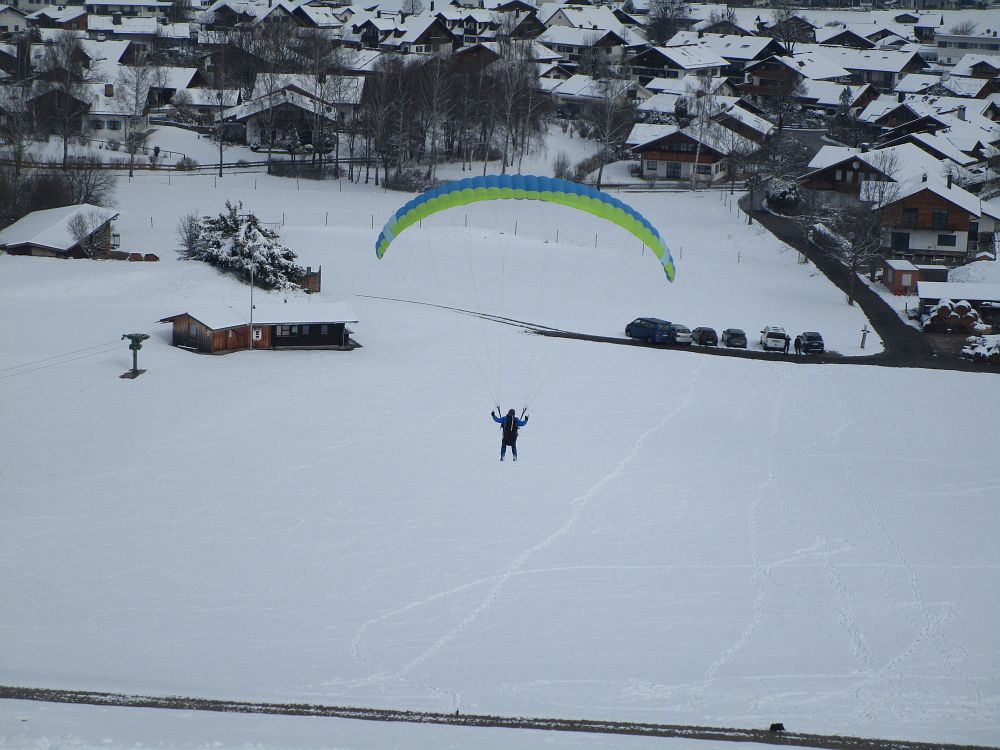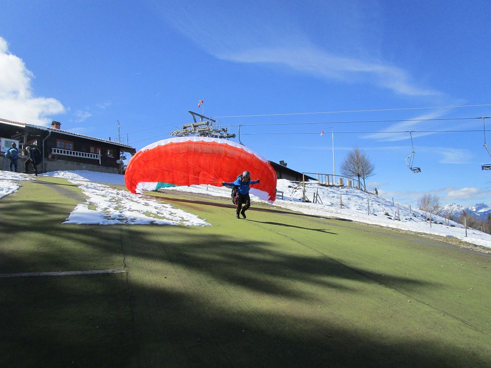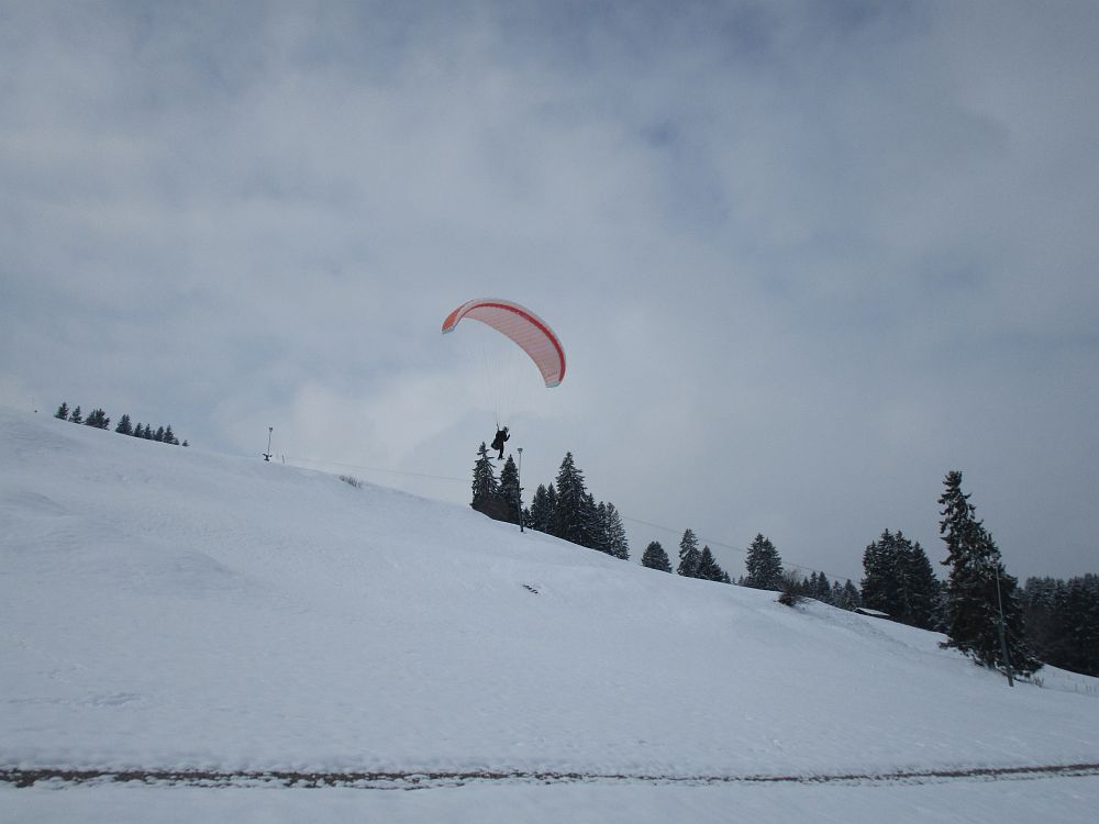 Die Einschulung am Sonntag erfolgte sehr zeitig, da schlechter Wind und weitere Schneefälle angesagt waren. Nach einige Aufziehübungen ging es gleich rauf, bevor die Schirme zu nass geworden wären. Im Großen und Ganzen klappte es recht gut.