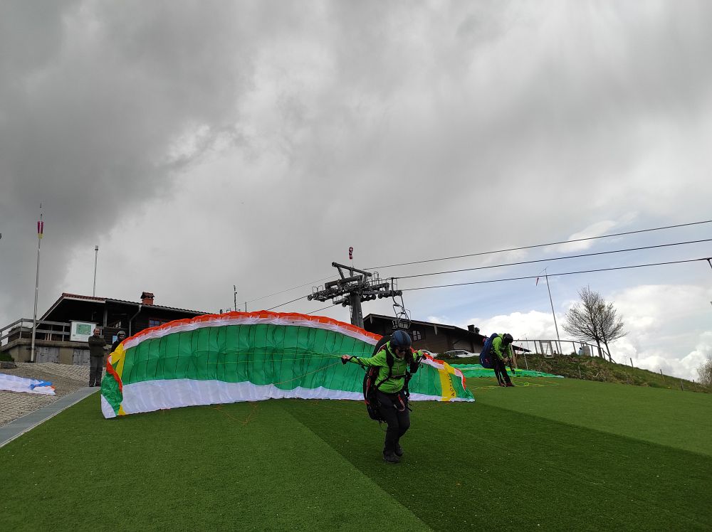 Einige konnten noch einen Flug machen, doch die Erstflieger kamen nach der Landeplatzbesprechung zu spät an den Startplatz, da der Wind bis dahin zu stark wurde.