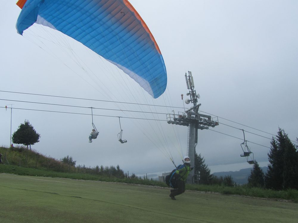 Der Freitag sah anfangs auch nicht viel besser aus, aber der Nebel hob sich am Vormittag dann doch noch über den Startplatz des Buchenberges hinaus. Vier bis fünf Flüge konnten immerhin pro Pilot erzielt werden. Erst der allmählich stärker werdende und dann zu starke Ostwind ließ uns keine andere Option als gegen 15 Uhr das Fliegen abzubrechen.