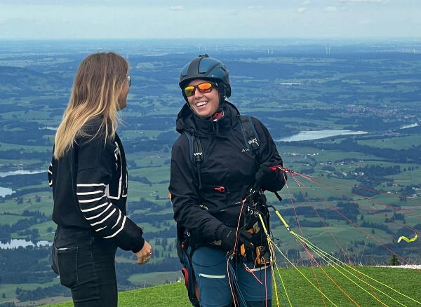 Ich fliege seit 8 Jahren Gleitschirm in einem von Männern dominierten Sport und freue mich jedes Mal, wenn Frauen im Kurs sind. Wir sind leider noch die deutliche Minderheit.